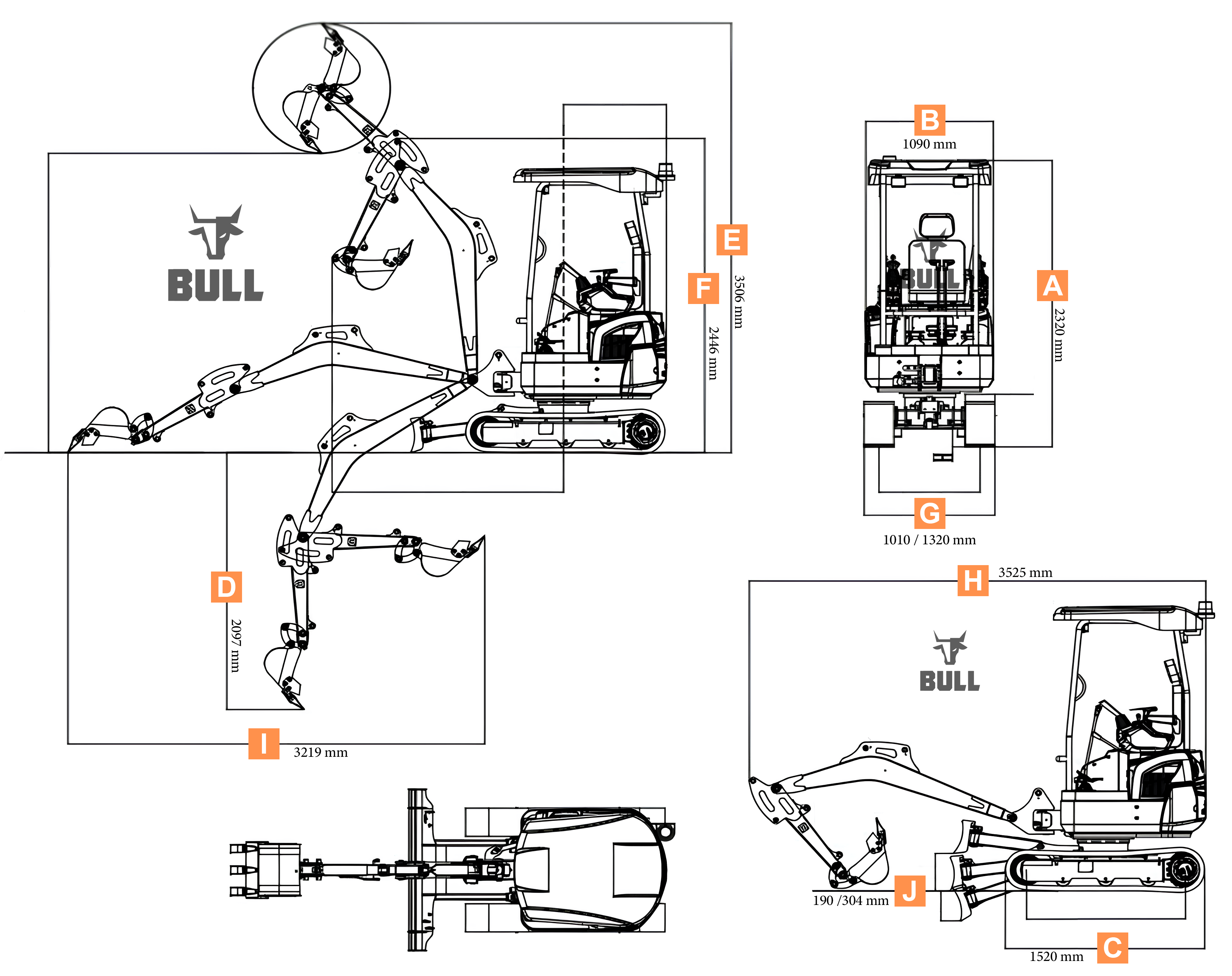 La mini-pala BULL da ogni angolazione