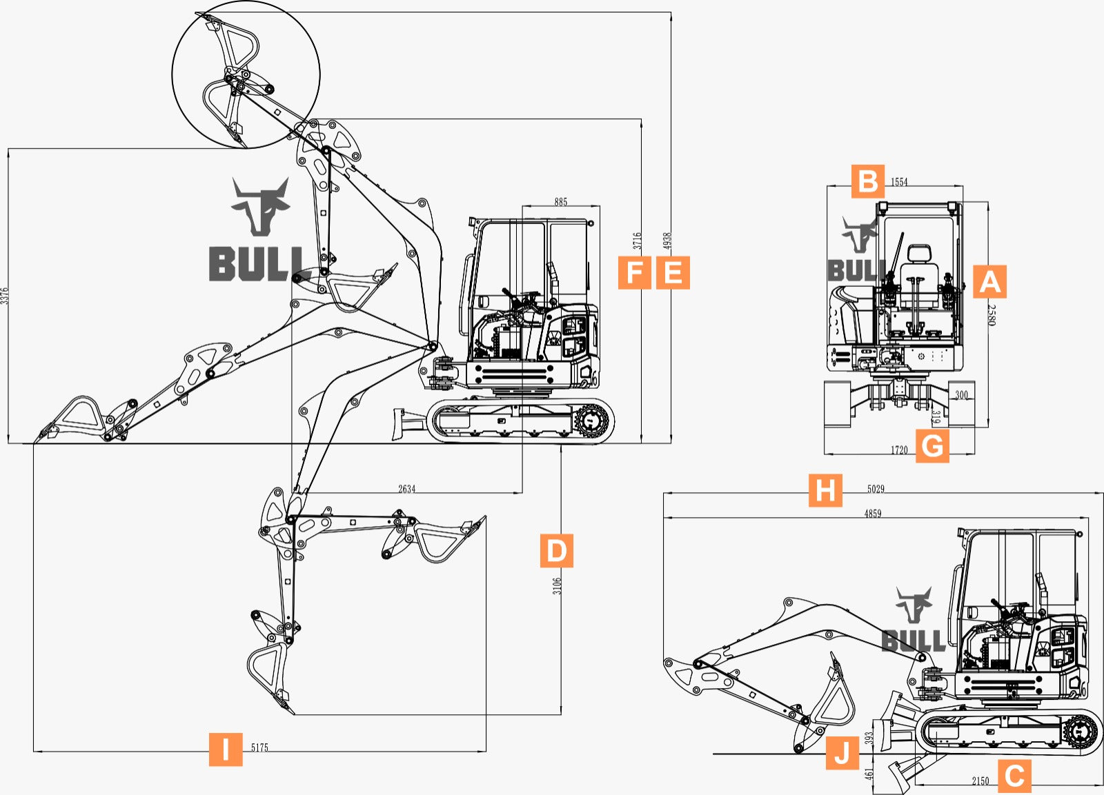 La mini-pala BULL da ogni angolazione